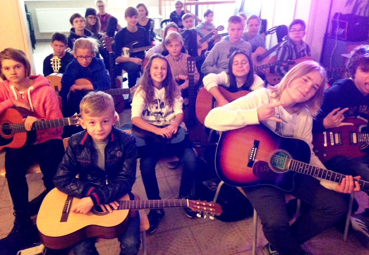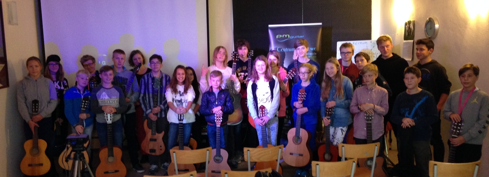 We wszystkich grupach, na pierwszych zajęciach pracowaliśmy głównie nad rytmiką ale również nad metrum i zagadnieniach czysto technicznych dotyczących ergonomii ruchu w grze na gitarze.